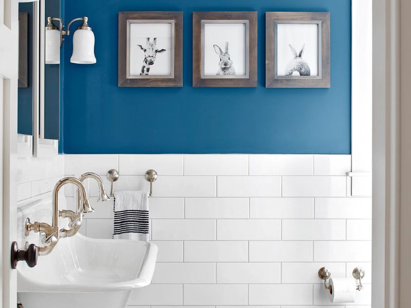 Special bathroom paints that are moisture-resistant and mold-resistant are advised, especially in ceilings and areas where steam is present. These paints are capable of withstanding condensation present in bathrooms.